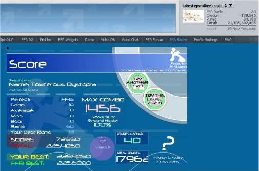 but this is getting off topic. yes, other people have played on my account. big whoop. 99% of the scores are mine (i would say 100%, but im not positive). and more than 99% of the grand total score is mine. my IP would show up as being logged into dozens of different FFR accounts if someone were to check. not all of which are alts... accounts like Master of the Taco, Flash G0d, Momoko Katsura, and several other currently active players that i won't mention just to save them the grief.
