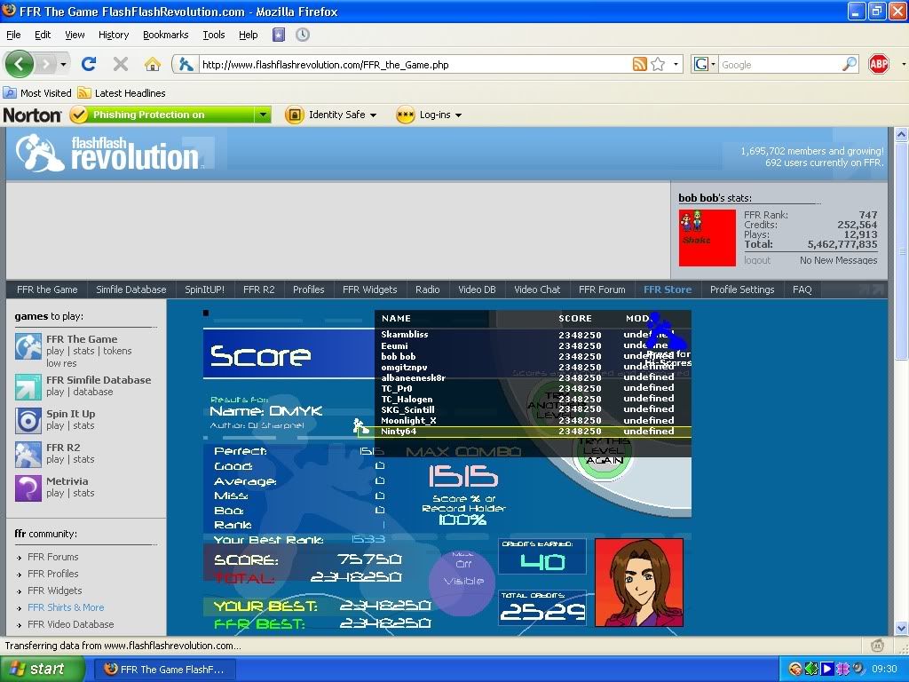 ![]() And I tried crowdpleaser the real way again (vibrating) ![]() My rank 9 score was also vibrating but it was like 11 goods, worse accuracy Last edited by DossarLX ODI; 09-13-2009 at 11:48 AM.. |