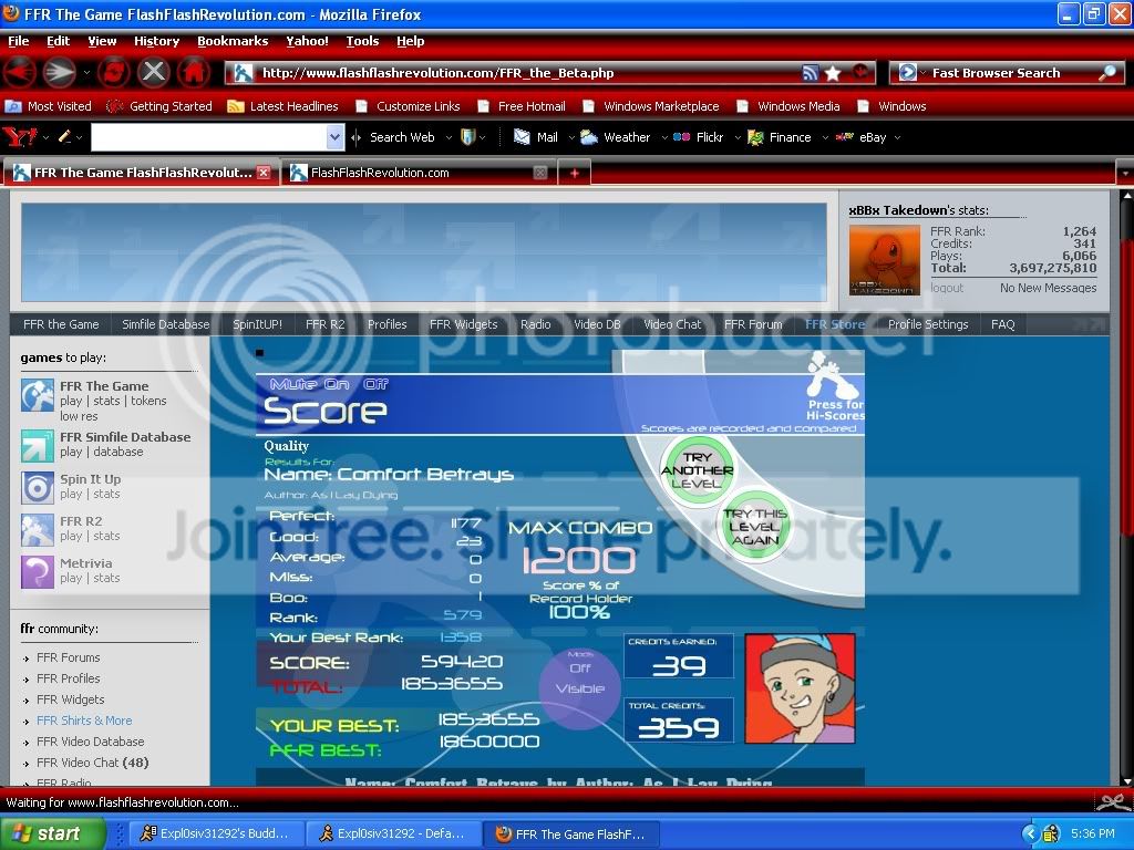![]() I had to AAA it twice because Tass doesn't bother recording scores lmfao ps. my avatar is my reaction to this score h3h3 Also my replay is pretty beast, only 2 avmisses http://www.flashflashrevolution.com/...play/54875967/ Last edited by DossarLX ODI; 10-4-2009 at 10:13 AM.. |