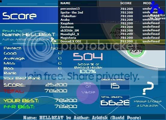 jnbidevniuhyb scores: Nomina Nuda Tenemus 1-0-0-0, Anti-Ares 1-0-0-0 Best AAA: Frictional Nevada (Done while FFR was out, so it doesn't show in my level stats) Resting. I might restart playing FFR seriously someday. |