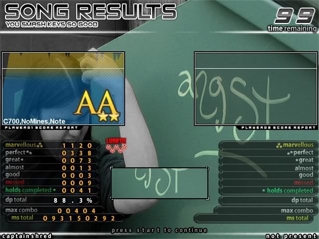 haven't TOUCHED stepmania in 2 weeks - school and rl stuff - so i decided to play today and got a decent score (i think?), please tell me how horrible or good this is: