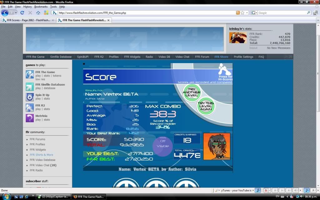 this is quite difficult. This was my first run. I think I can halve the perfects while fcing on a good day. I've had a pretty bad day on ffr today.