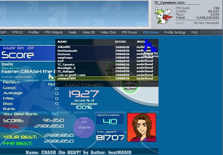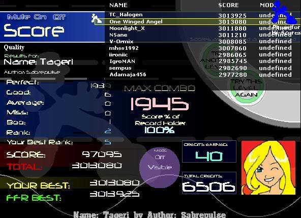 ![]() I have booflags and blackflags on more than half of the FMOs I haven't AAA'd I swear to god, I'm capable of AAA'ing every single FMO but I always **** up in the last 100 notes or so from nerves Last edited by One Winged Angel; 11-28-2009 at 04:21 PM.. |