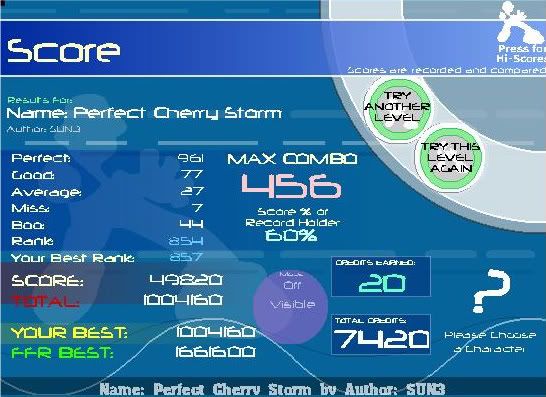 ![]() So yeah not as cool besides leonid and owas score but my previous best was 100 good NON FC on it, I got surprised by the jacks on the end left hand (trio) and got perfect-good-average-boo D: but I aaa'ed like EVERYTHING between 1400 and 2000