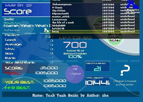 Then got desperate enough to just shoot for ANY sort of improvement of rank on any one of my non rank 1 songs...didn't get that either. Needless to say, I'm going to bed very angry. |