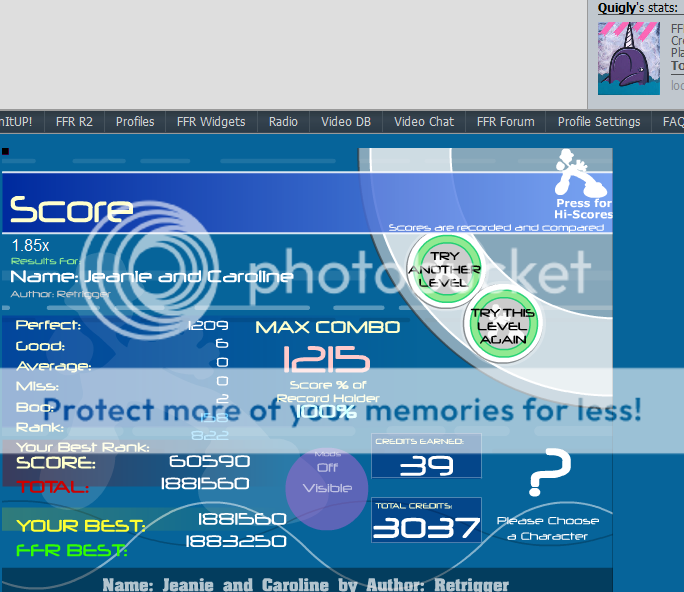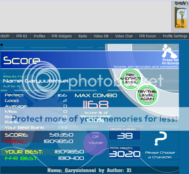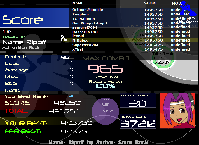 ![]() Wut!?!?! T.T 2 goods again... I keep getting 2 goods on fmos GAHHHHHHHH! all well, at least its a rank jump and I will soon be back to this file to dominate but for now I got more important scores to improve first. |