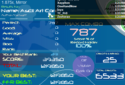 hey guys. most of your probably don't remember me but i stop in to say hi from time to time. I remember rubix, halogen, i love you, aod element, smitty, shash, sprite, and i guess a lot of other old school guys. I was just naming some out of the top of my head. If you remember me say hi. I might be playing a little more, but I think the definition of skill has changed recently considering that rubix has AAA'd every song.