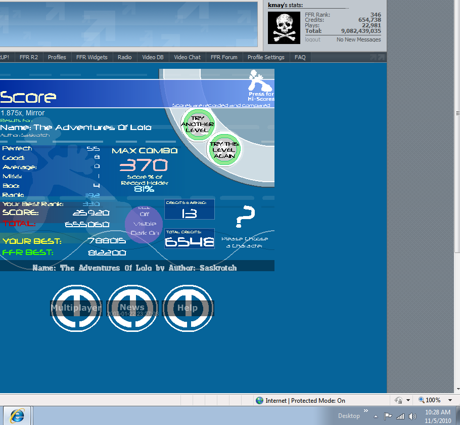 I will develop mental blocks on the intro if I play it twice in a row. -.- EDIT: I just got a good on Max Forever at ~2400 D= Last edited by remedy1502; 11-5-2010 at 03:32 AM.. |