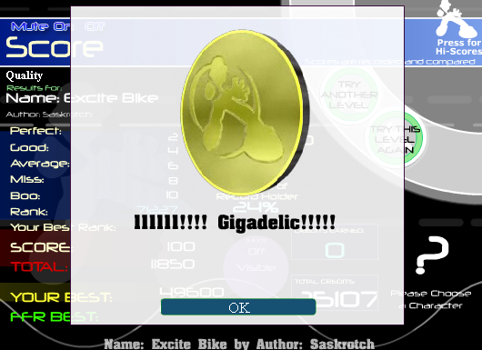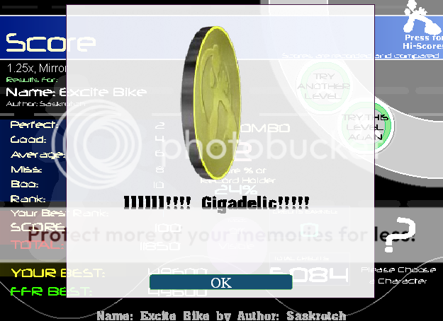Set auto-fail to 8 misses. first two arrows: perfect next four arrows: good next six average: average (this is the toughest part, just gotta hold consistent) (by the time you do this, you have two arrows left - miss those two and begin the sequence) In between the 14th and 15th arrows, you have a gap - tap two quads. Continue to miss until you hit the left and down arrows. If you do this right, you'll have 2-4-6-8-8, with 12 combo. The toughest part is getting two boos within the transition from the auto-fail to the results screen. Hit too early, you end up with 7 misses. Hit too late, you'll trigger another arrow. |