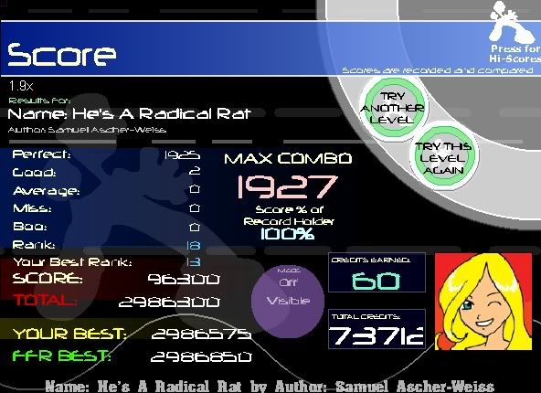 When I mess up, I always boo out, which means I hit other arrows with ****ty PA in the process. That way I can't deduce whether or not I *did* mess up the beginning. Whether or not I ever *actually* mess up the beginning from time to time is irrelevant. As long as the possibility is there -- and as long as I can't be fully certain, the nerves are calm. To be fair though I've only had to do this on a few files. I didn't even have to do it on DP -- which I wasn't even nervous over. I knew it was coming and that it was just a matter of time. That sort of mindset alone helps a lot. But crap like LGC and HA I was furiously nervous over and had to psych myself out so many times. |