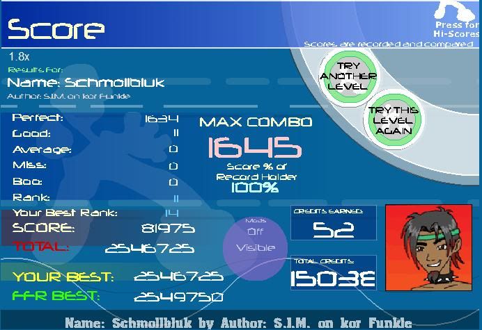 ![]() I can AAA the **** at 550 woo~ edit: 2 replays 11-0-0-0 FC http://www.flashflashrevolution.com/...play/59902435/ 6-1-2-1 after ~850 http://www.flashflashrevolution.com/...play/59902688/ Last edited by smartdude1212; 12-18-2010 at 03:51 AM.. |