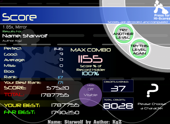 ![]() kyuin is the easiest very challenging song, but i keep getting a random miss at around 1380-1400 |