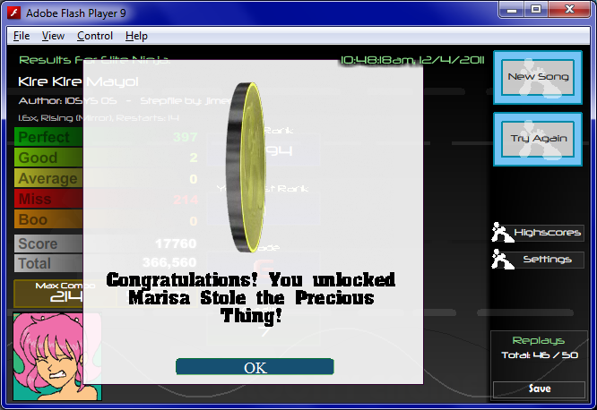 Lol everytime I play it I get better. \o/ ![]() EDIT: Go do Marisa justin ![]()