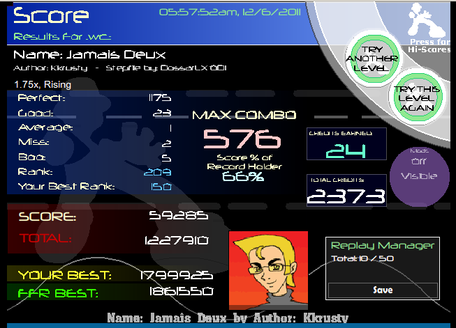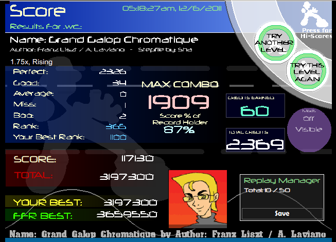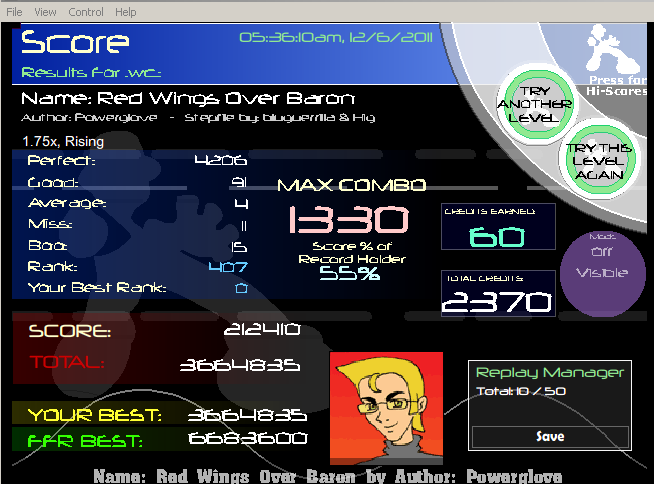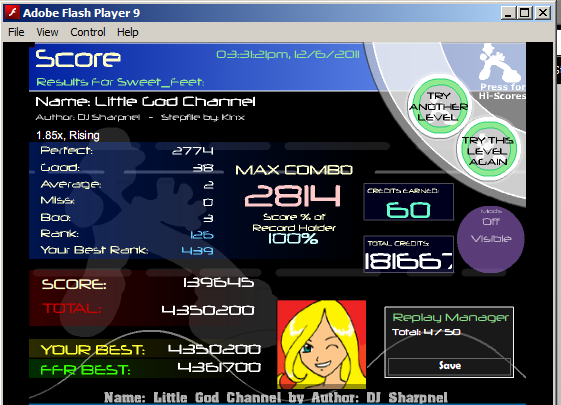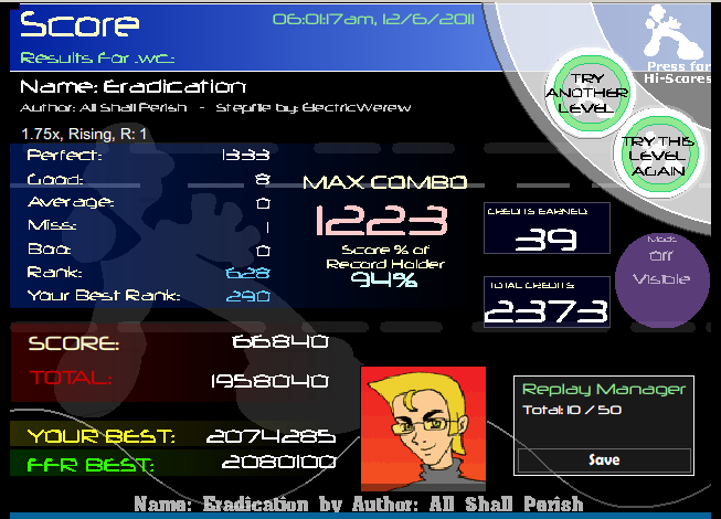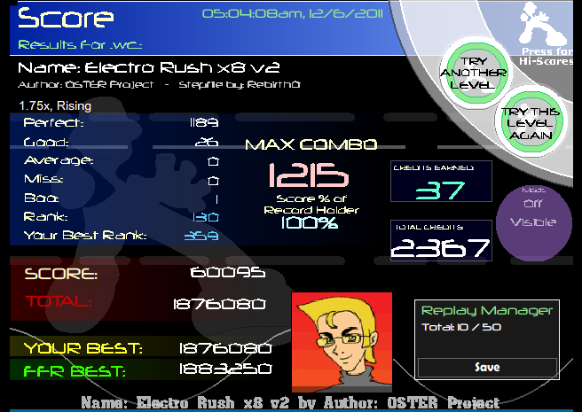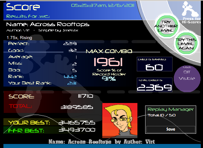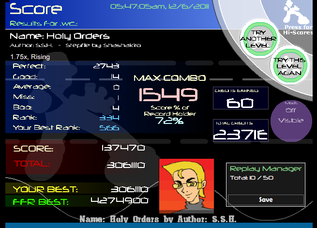 You almost beat my Blue Rose which I suck at, and you beat my Planet Karma since I haven't FC'd it with a decent PA yet ![]() Also nice scores everyone else (: Glad to see a lot of you guys improving rather quickly! |