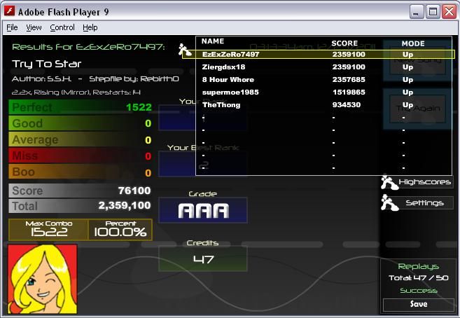 VERY BIG THANKS to Gundam-Dude for this epic chart, seriously , played it only once for that score, i will AAA that song later, this file is epic, seriously , wish there would be more files like these, files that are getting played by ear and fingers only <3