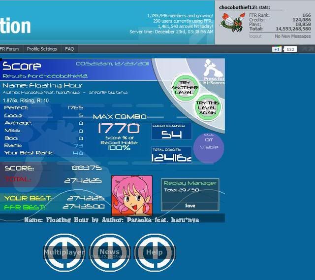 I'm down to low-200's, I just need to stop mashing the JS when I get tired (rofl, stamina...)Lmao, I've repeatedly gotten exactly 2-0-0-1 on that song too many times in a row, I know how you feel. xD |