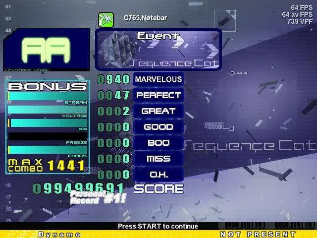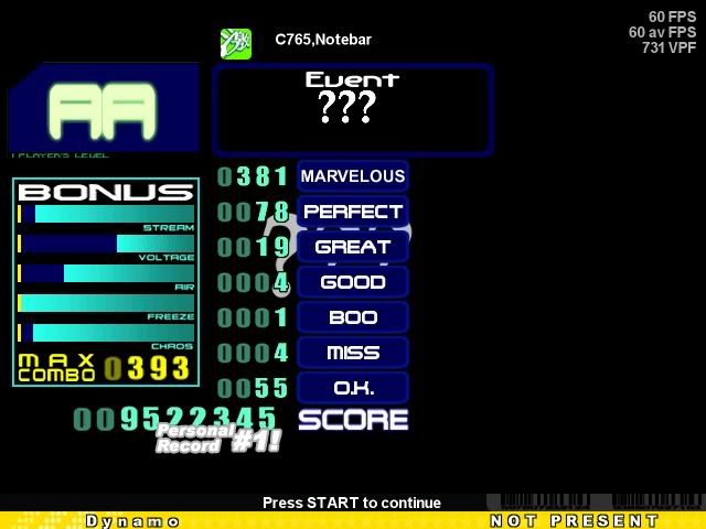 ![]() Could probably AAA on a lucky run ![]() The beginning chord-stream bursts are where I got all the cbs. Got maybe 2 of the greats in the end stuff. ![]() ![]() X-treme Grade, sup paexaea...although you could probably get close to AAAing this =p ![]() Gah ![]() ![]() Gah ![]() ![]() Gah (wasn't in the 46 5 46 this time, just a jack my keyboard didn't register)![]() Was doing really well and then fell apart cuz of nerves in the ending which I usually AAA ![]() ![]() This looks bad but I had 2 cbs and a great after the jacks...I just realllllly bombed the ending ![]() ![]() Can still AA this crap =) Now the gooder stuff ![]() ![]() First FC but I had to go and get 3 greats in the last 4 or 5 notes lmao ![]() Pretty okay MA amirite? ![]() 1 good on a jack, the other in the 24ths...probably close to the best I can get on this for a while and this. ![]() Was really surprised that I didn't mess anything up after the start...I probably should've played it again to see if I could FC but the beginning is too tricky lol |