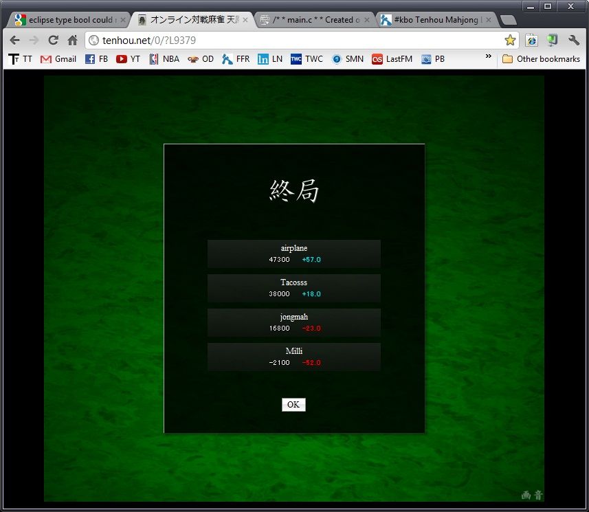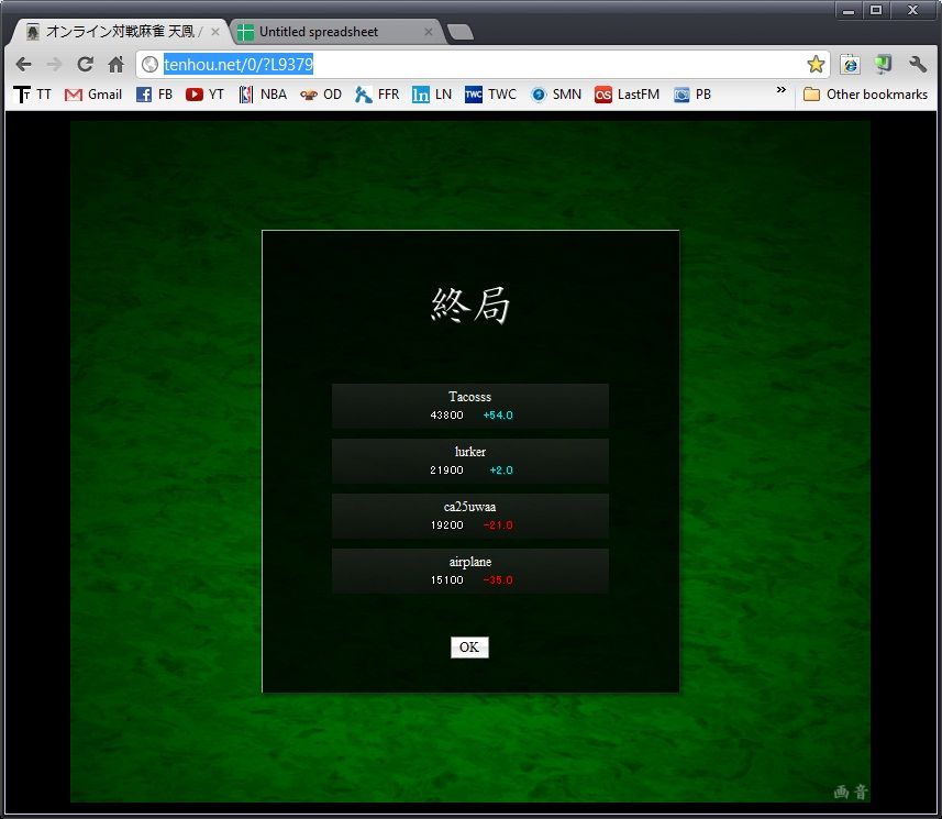 *snip* http://tenhou.net/0/?log=2012061014g...-5f7fcccb&tw=3 15 hands involved edit: goddamnit niko