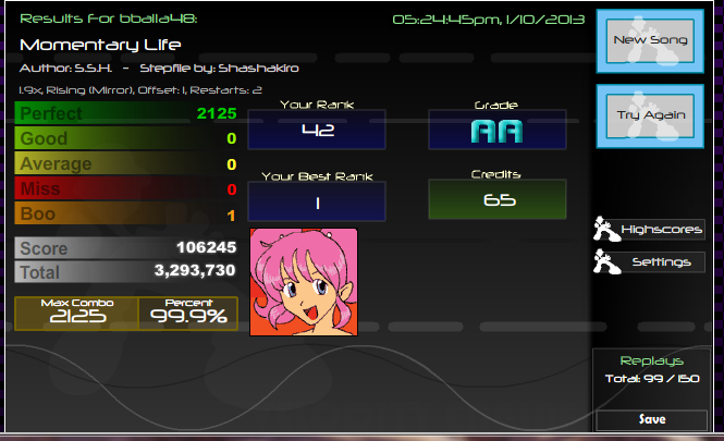 Round 3 Round 3 will conclude Sunday January 13th at 11:59pm Servertime D6 - Frictional Nevada (Misc) D5 -Exciting Hyper Highspeed Star (Dance 2) D4 - Classical Insanity (classical) D3 - Z (Dance 2) D2 - H a l o g e n (FFR edit) (Dance) D1 - Blank Knowing (Legacy) |