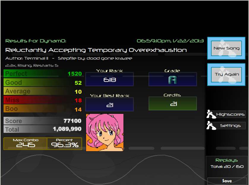 ![]() I guess the frame fixes worked out lol :P finally got a good FC edit: AAAed the part i normally have trouble with, messed up on a part i usually AAA ![]()