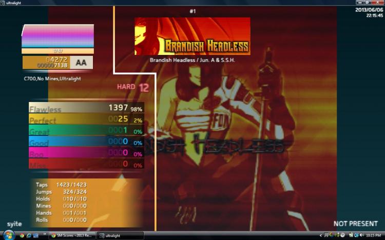 I figured since I still participate in stepmania I might as well still post a score of two every now and again. This is what I have gotten after I stopped playing rhythm games for 2 months and started up again recently last month.