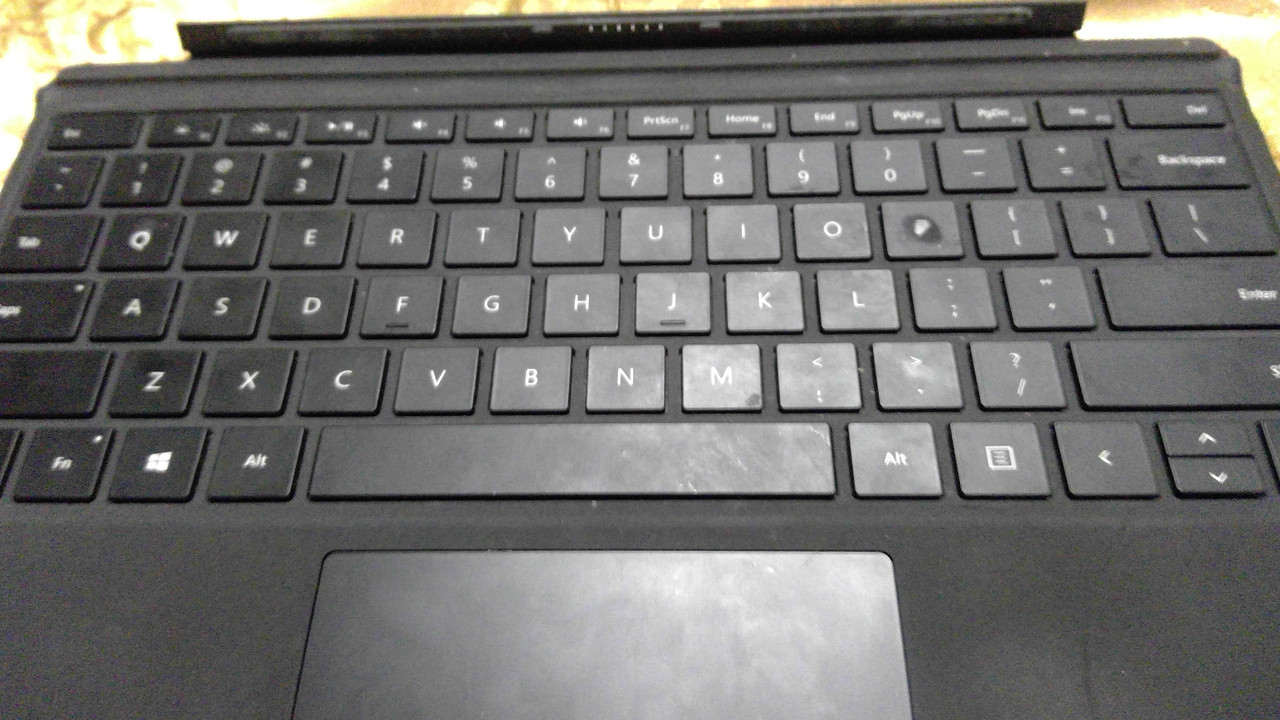 A Mac laptop keyboard on a computer with a slightly broken screen, not the best set-up at all but it works just fine for me.