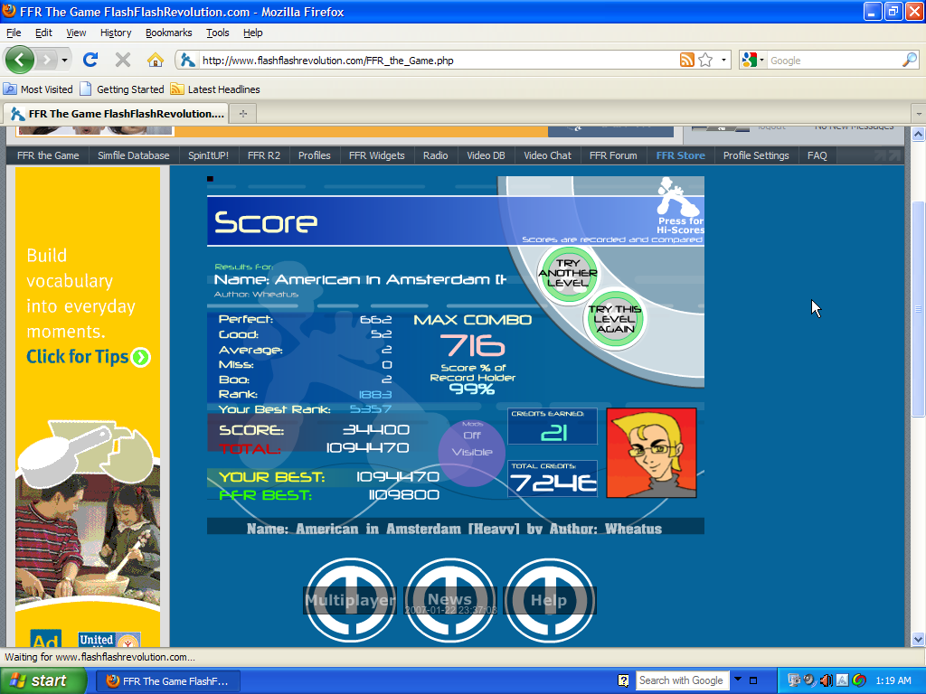 My oldest screenshot is from July 16th, 2009, Windows XP, website ads and all. I think I was playing for about a month at this point. The oldest replay I have, though likely not my first one. I believe the feature used to be far more limited, so there may have been older ones which ended up being pruned when I hit the original 50 limit. At January 5th, 2011, that pegs this as a few months after the site came back from a 10 month shutdown. Bonus prochat easter egg screenshot