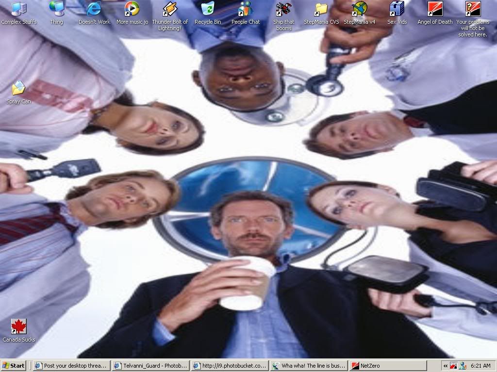 ![]() 1024x768 external monitor on top, with laptop's 1280x768 below. I can use 1280x1024 on the monitor, but that's at the cost of alot of lag. I took your advice to clean my desktop. I moved all the icons that I don't launch first, or don't access as much into a folder called "Desktop crap". The rest of it is stuff that I launch first, or close all my other programs before running. Red = active window. You'll notice that windows xp allows you to access your desktop from the taskbar. Oh, ownage wallpaper.