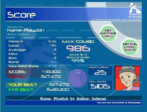 Wont post the SS though cause it has a PA much worse than 100 goods :l maybe when i get under 75 goods ill post it Other noteworthy accomplishments: 1 miss on Max forever 1567 cbo rank dropped to 300 something. 800 cbo on playdoh dropped one rank :l wtf is that. CIA rave FC put me at 756 rank. got gradeus down to about 10 misses. 551 cbo on Carousel paridise dropped me to 136 or something. Thats about it i should be FCing fantransic very soon