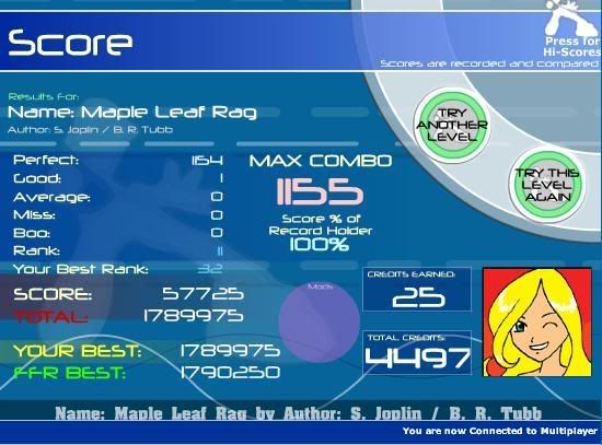 http://www.flashflashrevolution.com/...gameid=3399920 AAA of B-Virus, #67 or 68. http://www.flashflashrevolution.com/...gameid=3400307 This made me so mad... 13-3-1-4 on RAT v2. 1462 combo. http://www.flashflashrevolution.com/...gameid=3400077