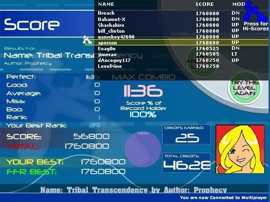 ![]() ![]() ![]() i can't do uber rave v2 well... i always panic at the same place perhaps of some mental pressure i gave myself on that song since its release. cause i can't read it at all in the past and it kinda give me a bad bad impression of the stepfile, even till now. don't know whether it happened to you guys on some other songs, but i am pissed off with myself on the score of uber rave v2. i guess dynamo will own me on that =/ and when i switched to other songs i did better ![]()