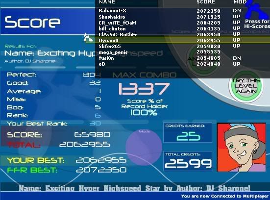 I'm not an "OMG INSANE" FFR player, but I was semi-proud of these scores.