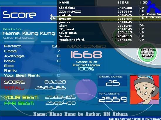 Took me forever, Damn 32nds always get me. ![]() Pretty Good PA for me. ![]() This song never treated me right, but I finally snagged the bitch. ![]() Another pretty good PA. I had a better one, but i lost the SS (Under 20 goods, I think it was 16.) ![]() One Boo Syndrome, but a decent PA for the song. ![]() Mediocre PA for the song, but I was still semi-happy when I FC'd it. ![]() I think this PA is pretty damn good for me. ![]() After the first time I FC'd this one, I could do it every time after. My best PA. ![]() Gonna AAA this one soon. ![]() Boo's because of the end. I could probably do better, but I don't play this song much. ![]() I consider myself pretty good for only have been playing 70 days.