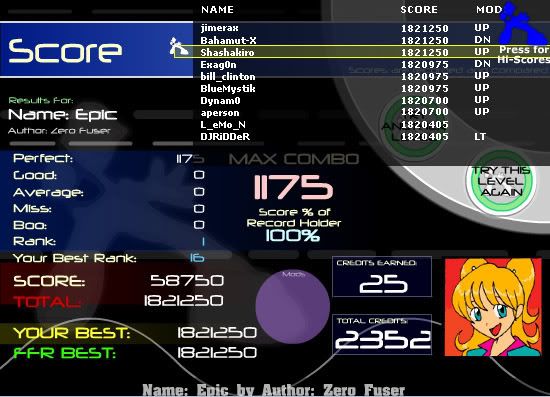 Edit: Holy crap huge improvement. ![]() No longer my 2nd worst song. Still got to beat 14 goods 1 boo on cia, only song in 200's (almost 300's). Last edited by argo15; 10-12-2006 at 07:33 PM.. |