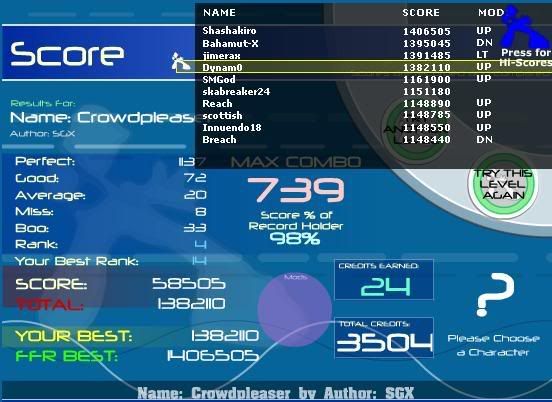 dore... lol. reverse those two scores and you have mine on them. although i kept getting 2 goods on dot death through the 1st 400ish section, but kept missing 1. was really weird. i think i can definately get dot death to 3 or 4 goods with a solid run.