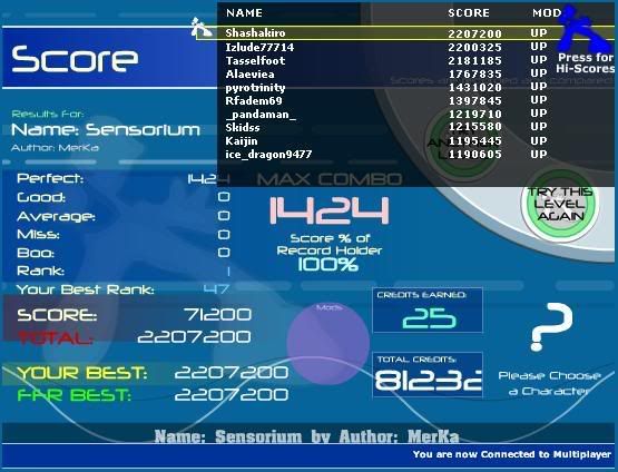 The score WAS my FFR sightread...those games were all yesterday, and they were on a test song (Silence with a noteskin, to be specific)...the 2 million something score was also Silence, don't know why that one doesn't show up as Sensorium but the others do.