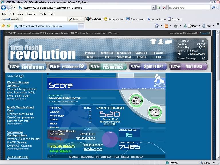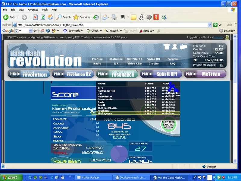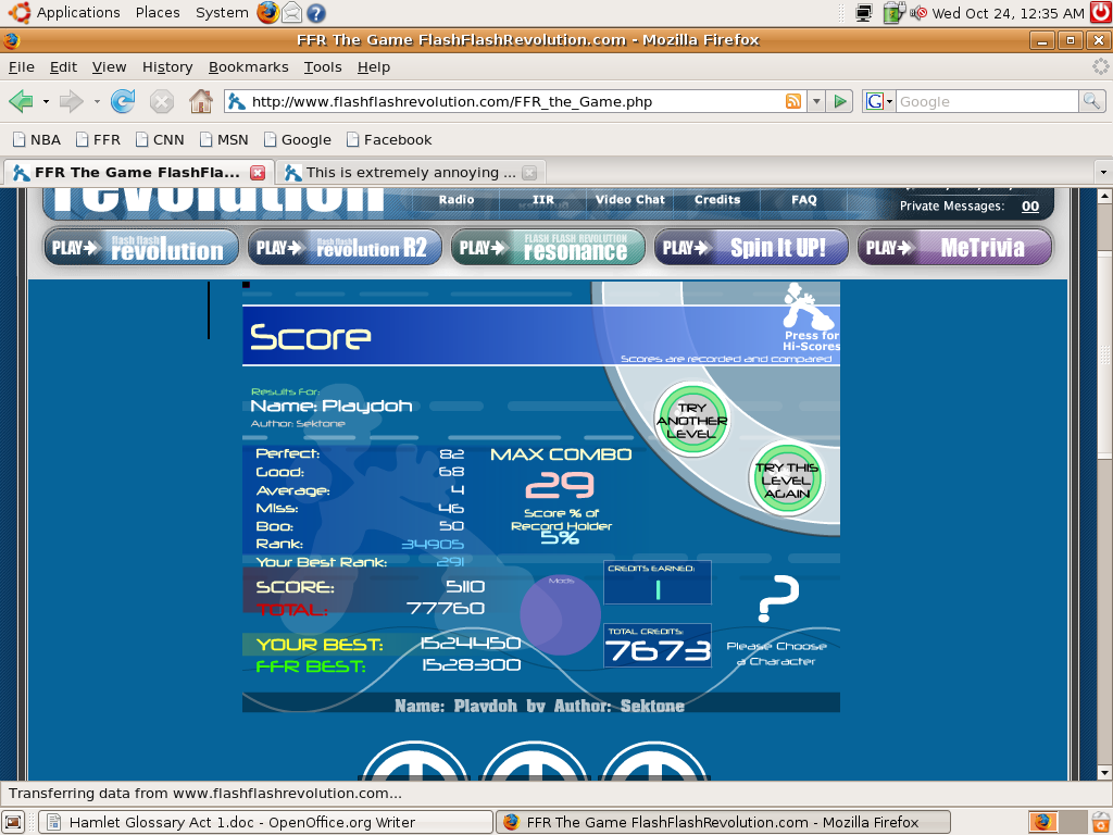 ![]() I apologize if I seem like a little bitch for posting this score, but: 1. I didn't realize the tournament had started 2. I won't be able to get on my PC to play tomorrow 3. I am on the ****tiest laptop on the planet right now So hopefully that'll get me through. By the way, Remedy, how did I end up in Expert? I thought you put me in intermediate Edit: Oops, forgot to crop. Sorry about the page stretching, guys