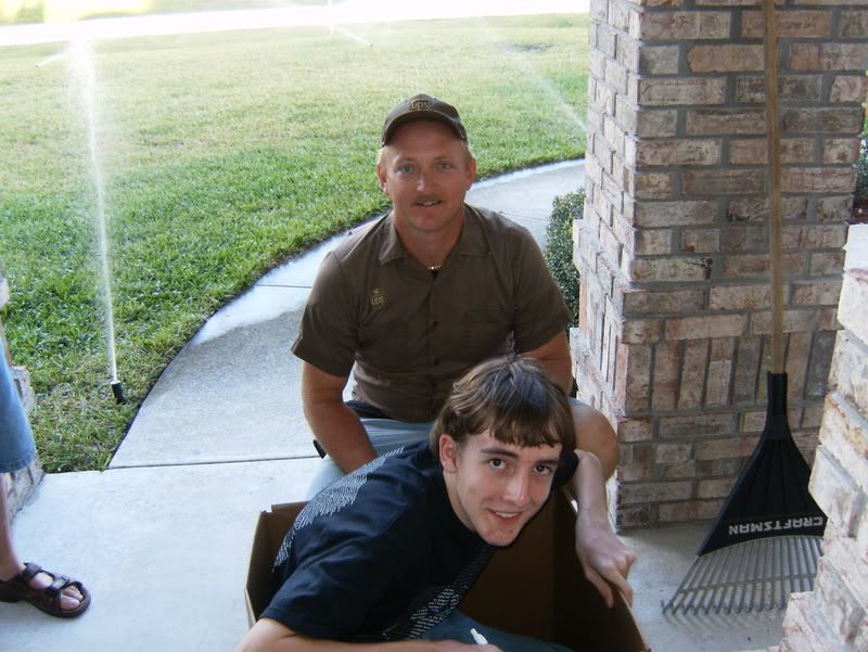 I asked my dad if he possibly knew someone from UPS...and he said there was some random guy that delivers to his work sometimes in my neighborhood. So...we head up there and are just like, "Hay, can you put on your uniform and deliver me?" And uh...it worked. |