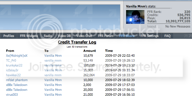 I'm very pleased with the way this tournament has started, but I'm afraid those credits who_cares973 sent me, I never received.