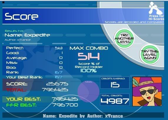 The max is 1264 and... 1240+16+7+7=1270... that means I pulled SIX avg/good/miss and 1 avg/boo/miss... I love FFR -_- |