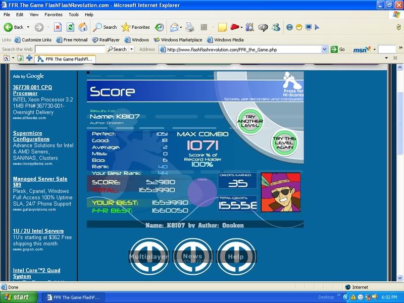_____________________________________________ AAA - 189 Level rank Average Level - ? Best legit. FC - Runnymorning (SGX Mix) ITG Overall % - 97.60(not updating anymore) ___________________________________ Winner of HammyMcSquirrel's tournament Winner of rshadow8888's tournament Winner of travman301's tournament Winner of Colt.45's tournament |