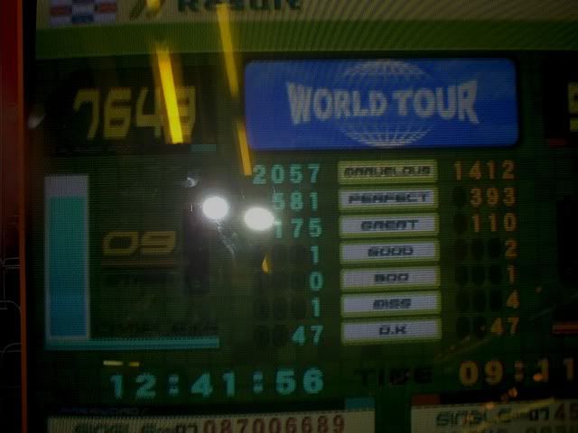 Anyways, first oni course - (I'm the one on the left) ![]() Bag 1x Flat - ![]() If you can;t see the numbers, going down, they are - 200 perfect 138 great 3 good 6 boo 8 miss 0 OK Blah. I hate my crappy camera. =/