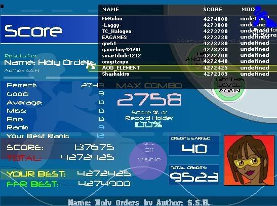 not too sure if i can beat this score i tried 76 times already and this is all i have to show for it, if i need to improve i will whore it until i do