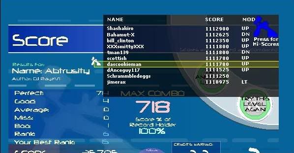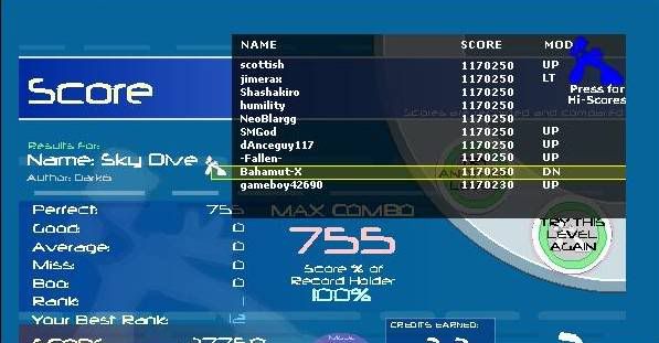 EDIT: Holy ****... I usually can't PA this at all... previous best as 9 goods without FCing and 12 (I think) with. ![]() EDIT EDIT: Decided to do a random run on CIA Rave and Delirium. ![]() ![]() Plus a couple of other small improvements and 2billion points. EDIT EDIT EDIT: I dunno wtf's up with my background colors...