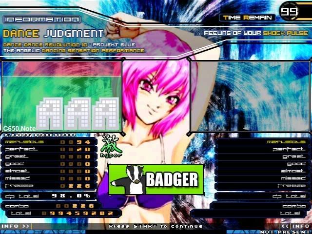 21 AAAA's ![]() Class: Index/One Hand HP: 230/190 (stream combo speed) Strength: 180/180 (max jack speed) Defense: 280/290 (double 8th stream speed) Speed: 270/260 (pass stream speed) Accuracy: 95/80 (average percent of marvelouses) Stamina: 250/230 (consistent stream survival) Evasion: 650/700 (comfort scroll rate) |