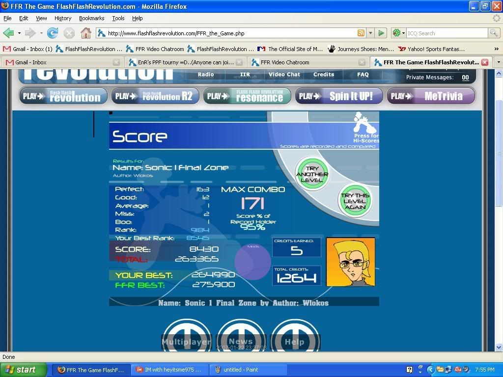 ![]() i played this 5 minutes b4 i got on a bullet train. i rushed especially towards the end. this is the same thing as saying I LOSE but im not gonna play ffr until 10 tomorrow...