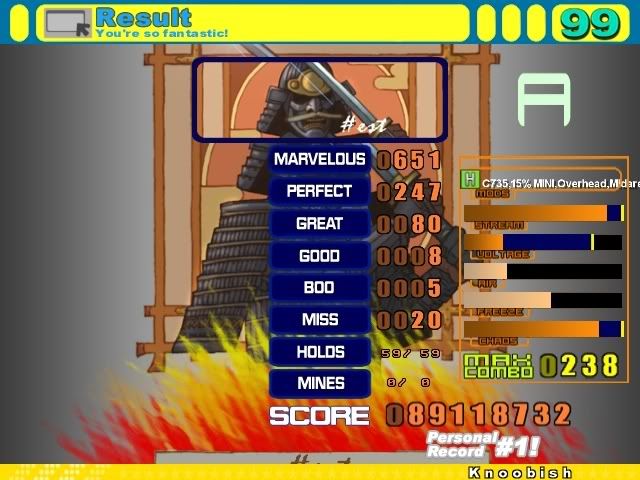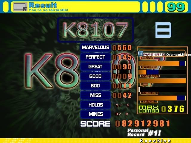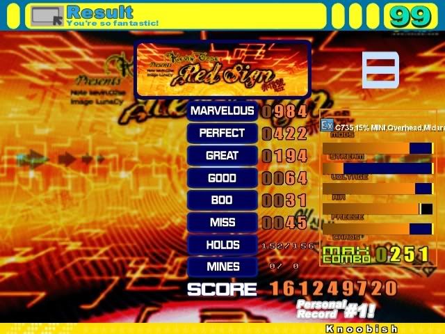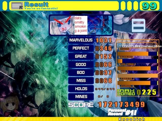 ![]() In other news, I'm trying to get fast at streams like midare cuz he makes me look bad ![]() ![]() ![]() That's a 6 mil improvement on sharpest, 10 mil improvement on delta, and a 9 mil improvement on red sign for me... so yeah, I still suck. |