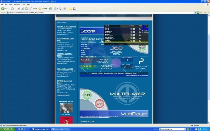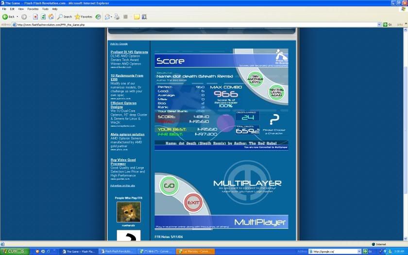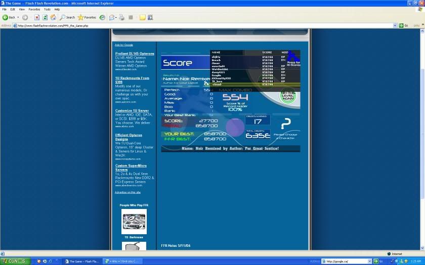 As for Lethal, im 100% sure its AAA'able because I got my goods on the stairs in the begining, the rest I perfected. I've gotten 0 goods up until the last jack once, which I missed, but im sure it can be AAA'd. As for revo, I can hit the jacks in it, but the part right after where it gets all jumpy and crap I end up missing on, I got a 635 combo today, but quit afterwards not realizing that would have prob. improved my rank. Silence, I'm so close to fc'ing spread, I get random misses because my left middle gives out sometimes, because im still not used to playing spread alot. I'll get it eventually.. EDIT: Here, I did have an SS.. ![]() And just got this.. ![]() Last edited by scottish; 09-4-2006 at 12:17 AM.. |