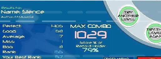 I got a 1100 something combo on Silence... 1 miss, because i always **** up one part when it starts to get hard (like 300 arrows in) but I comboed the rest, only 8 boos