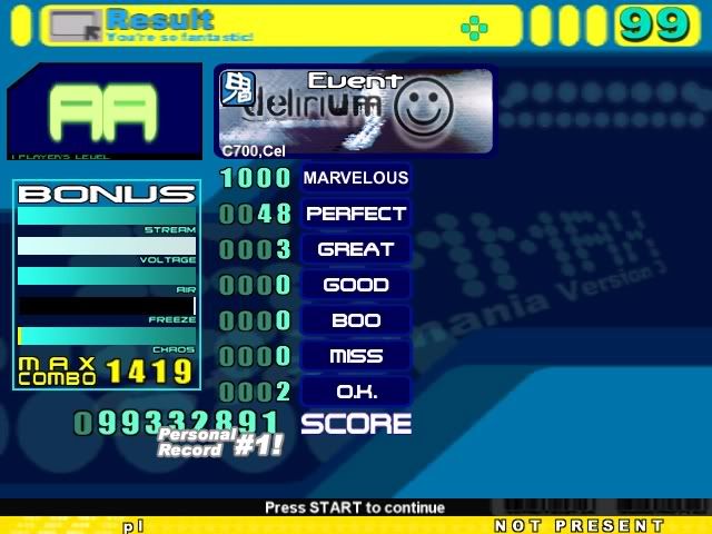 Constant doubles are my specialty. I've gotten a toasty once on Gigadelic in the part with all those 12 doubles. Still not close to passing it though.